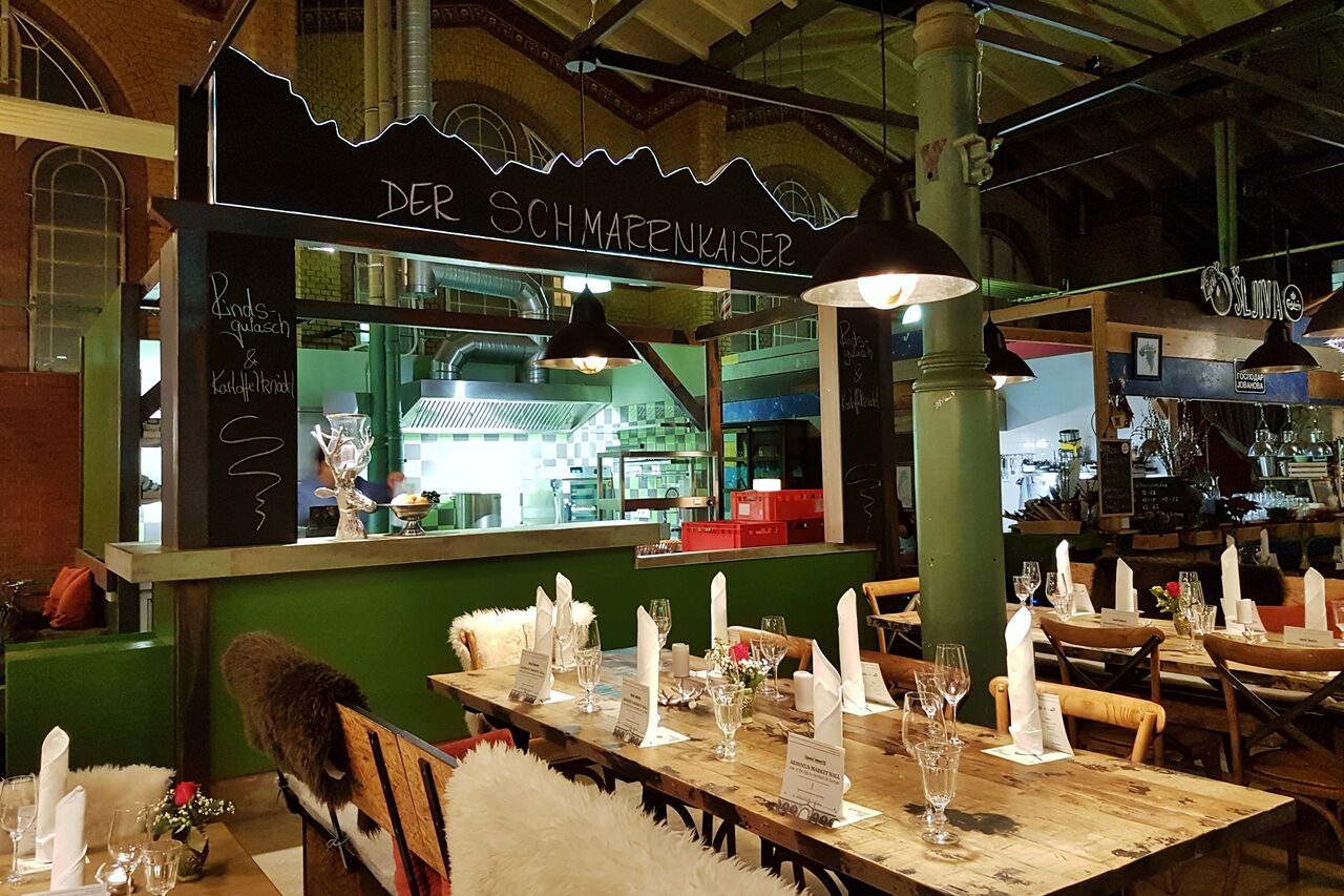 DER SCHMARRNKAISER, ein österreichisches Restaurant in der historischen und denkmalgeschützte Markthalle 10 in Moabit, bietet mit seiner frischen Küche für Groß und Klein, Vegetarier und Veganern gutes Essen in gemütlicher, familiärer Atmosphäre.